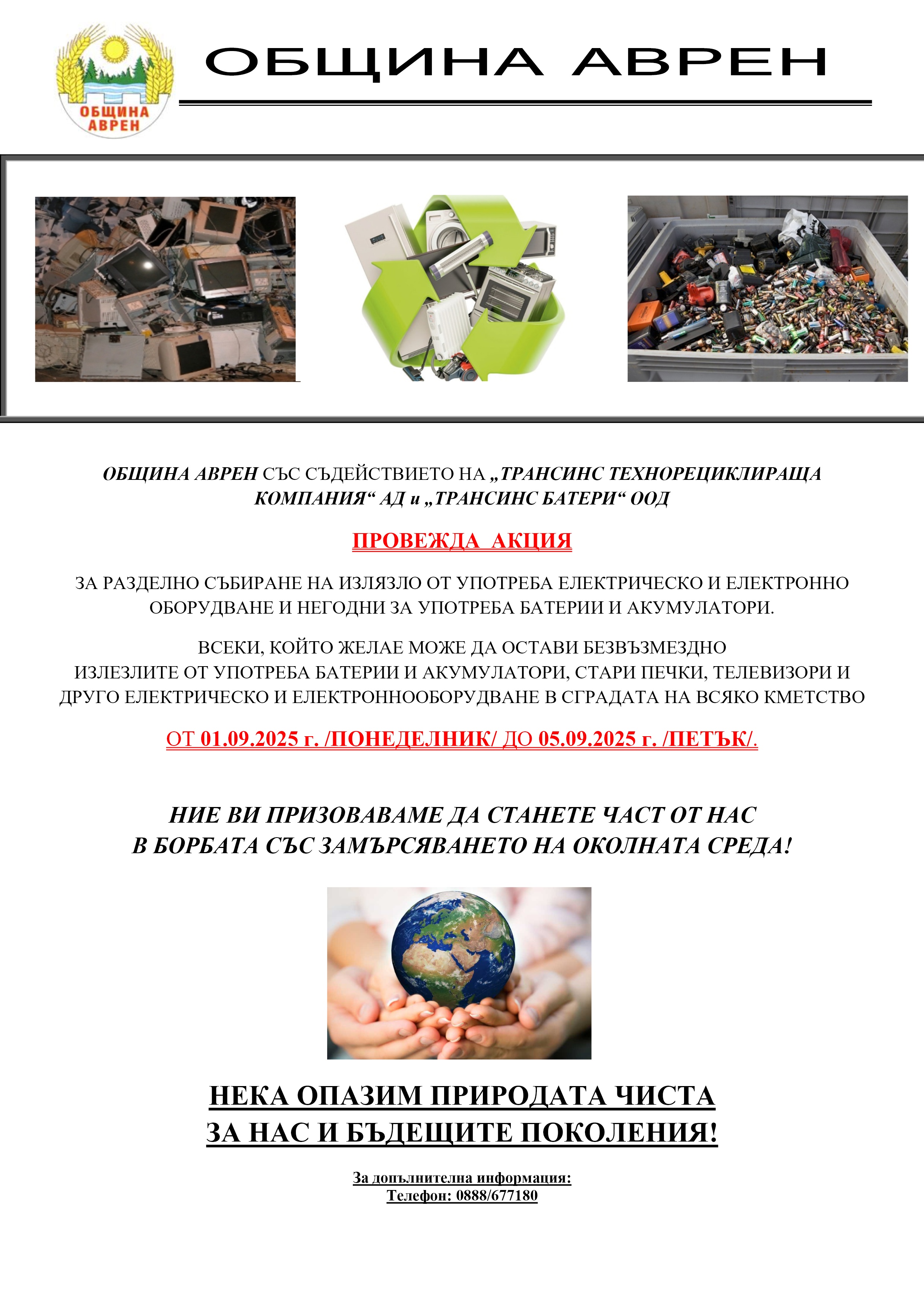 Зелен телефон - за нарушения, свързани със събирането и извозването на отпадъци, поддържане на чистота