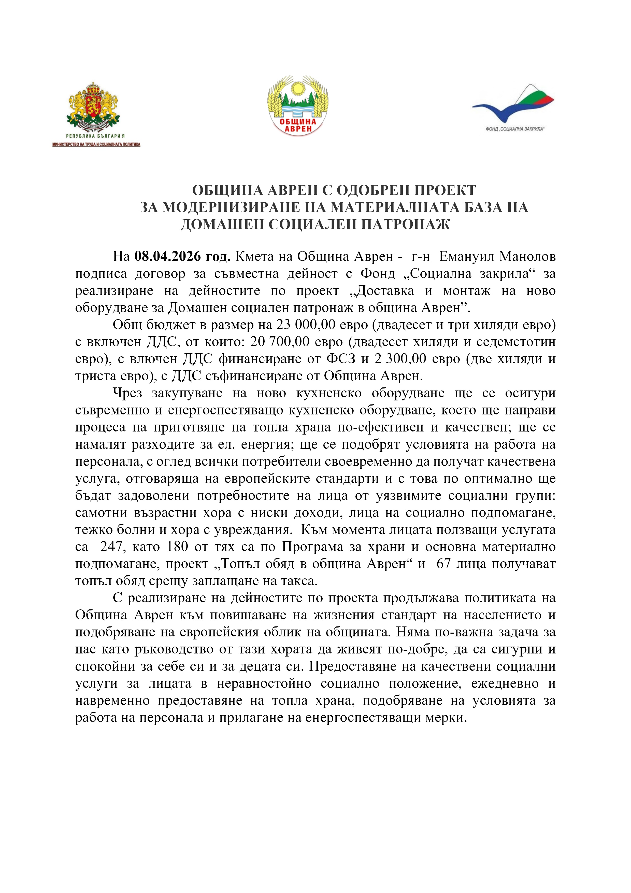 Иновативни здравно-социални услуги в община Аврен